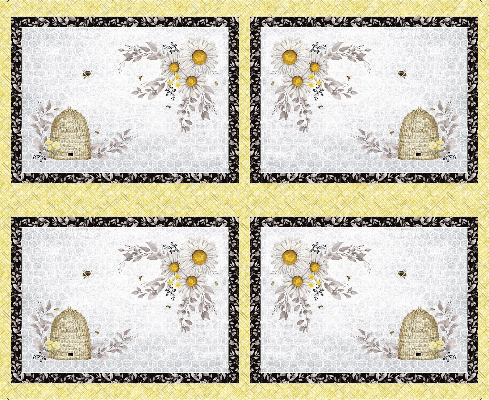 Bee Hive Placemats - Sweet Bees Cotton Print Fabric - per panel