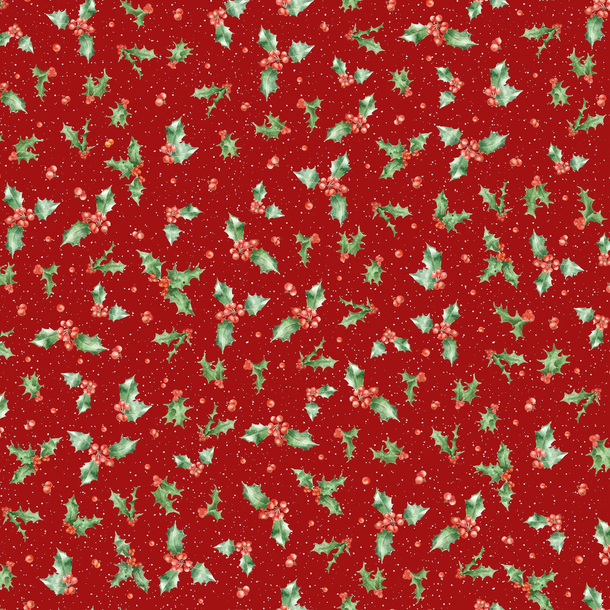Holly on Dark Red - One Snowy Day Cotton Print Fabric - End of Bolt 175cm