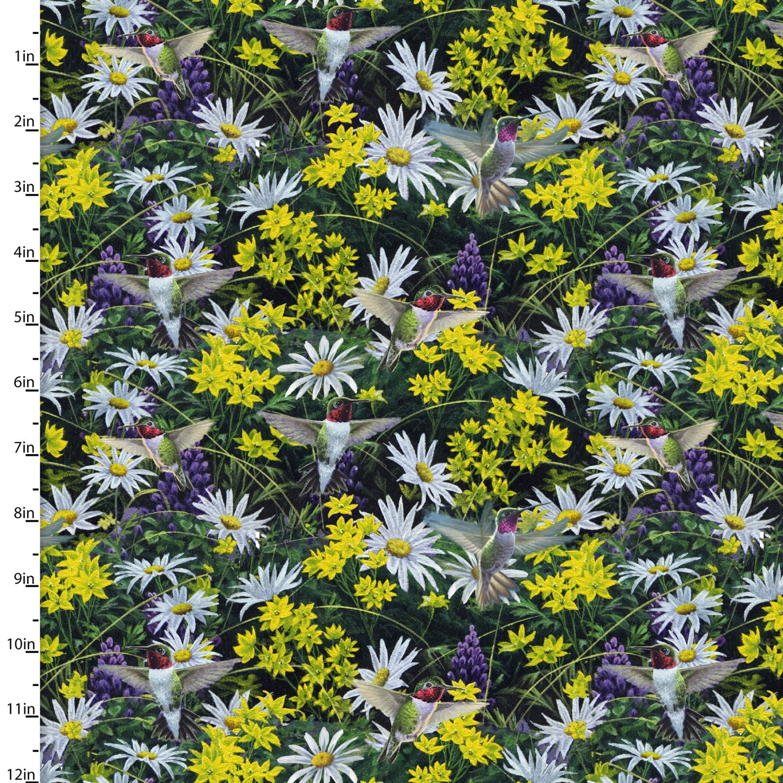 Hummingbird Floral - Mountain Sunrise Cotton Print Fabric - per half metre