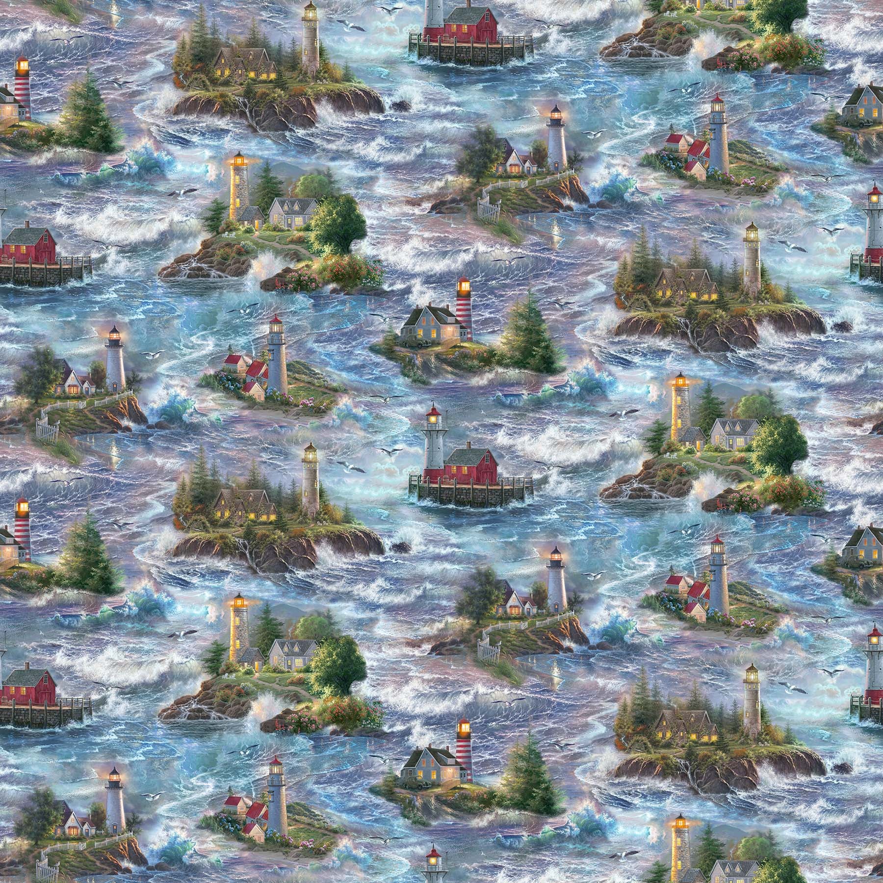 Lighthouses - Safe Harbour Cotton Print Fabric - per half metre