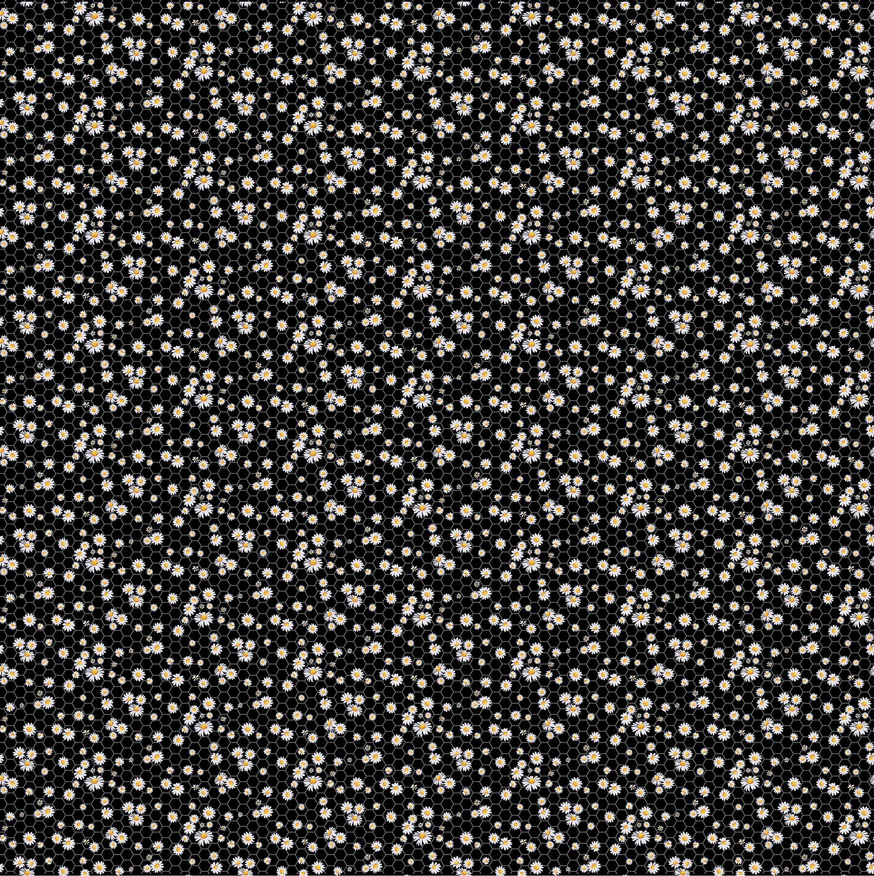 Mini Daisy on Black - Lavender Market Cotton Print Fabric - per half metre
