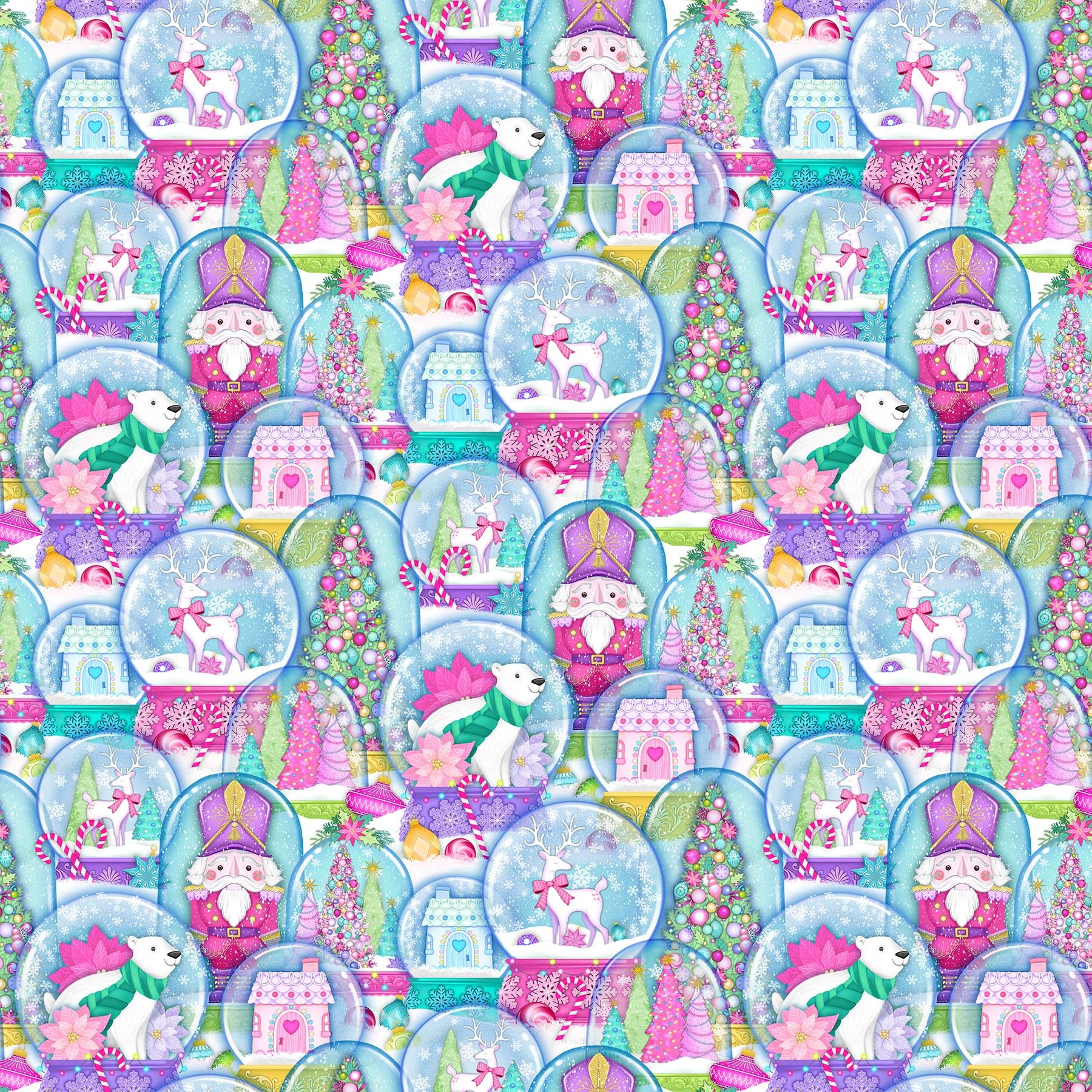 Packed Snow Globes - Merry and Bright Cotton Print Fabric - per half metre