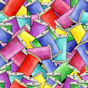 Spools - Steampunk Stitchery Cotton Print Fabric - per half metre