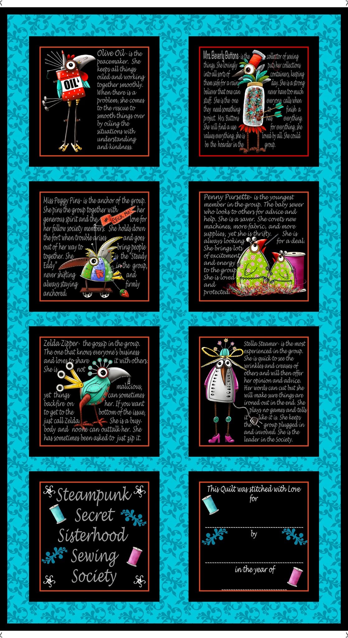 Steampunk Stitchery Blocks - Steampunk Stitchery Cotton Print Fabric - per panel