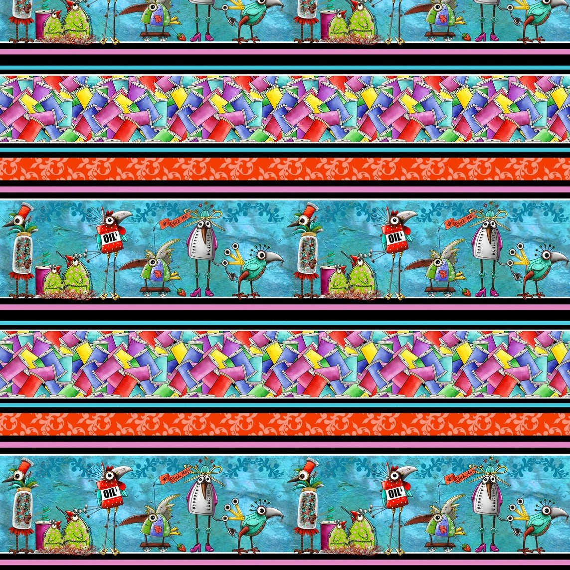 Steampunk Stitchery Stripe - Steampunk Stitchery Cotton Print Fabric - per half metre