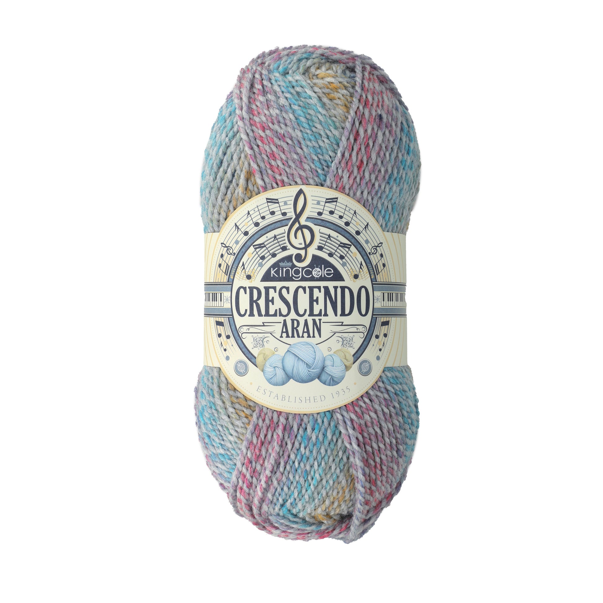 Elevate your knitting projects with King Cole's Crescendo Aran yarn, a luxurious, soft and versatile choice for knitters of all skill levels. Crafted from 100% premium acrylic, this yarn features a unique two-twist design, producing beautiful, subtle variegated shades. Inspired by musical rhythms, Crescendo Aran adds a harmonious blend of texture and color to your creations. Whether you're crafting cozy sweaters, warm blankets, or intricate patterns, this yarn ensures stunning results every time.